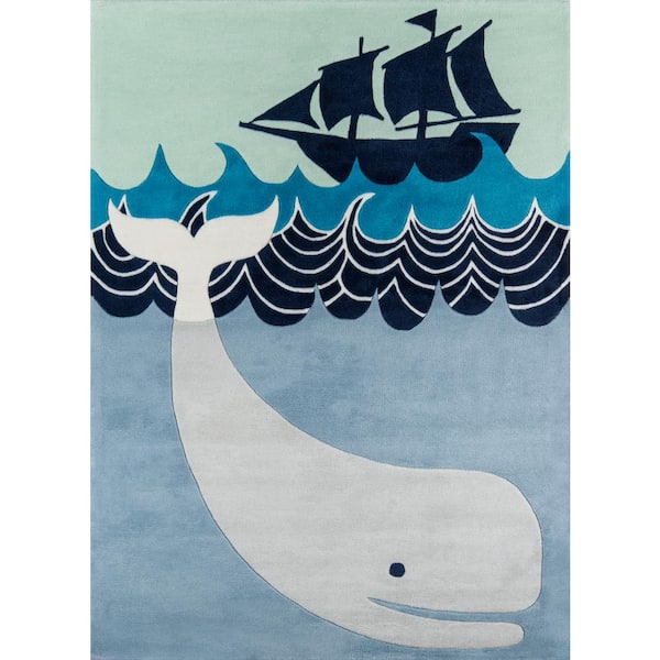 Lil Mo Whimsy Happy Whale Multi Blue 4 ft. x 6 ft. Indoor Kids Area Rug