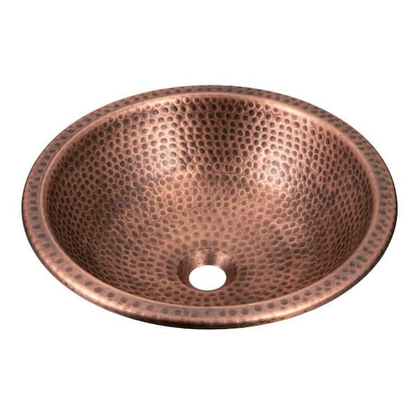 16 in. Hand Hammered Rotunda Dual Mount Bathroom Sink in Pure Copper