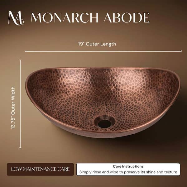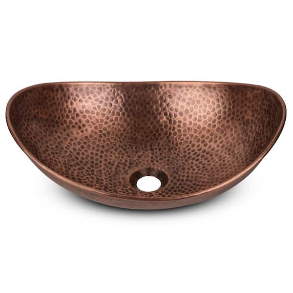 19 in. Hand Hammered Harbor Vessel Bathroom Sink in Pure Copper