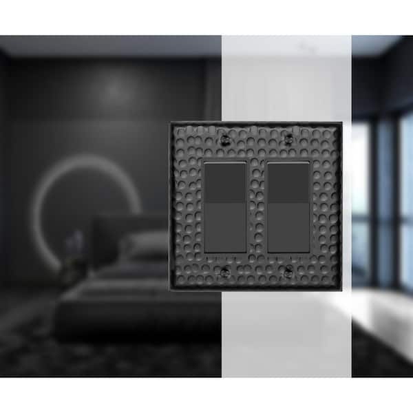 Hand Hammered 2-Gang Matte Black Decorator/Rocker Metal Wall Plate (2-Pack)
