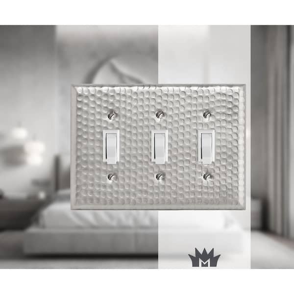 Hand Hammered Decorative Wall Plate Switch Plate Outlet Cover , 3 Gang, Brushed Nickel