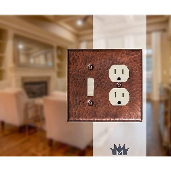 Pure Copper Hand Hammered 1 Toggle/1 Duplex Wall Plate