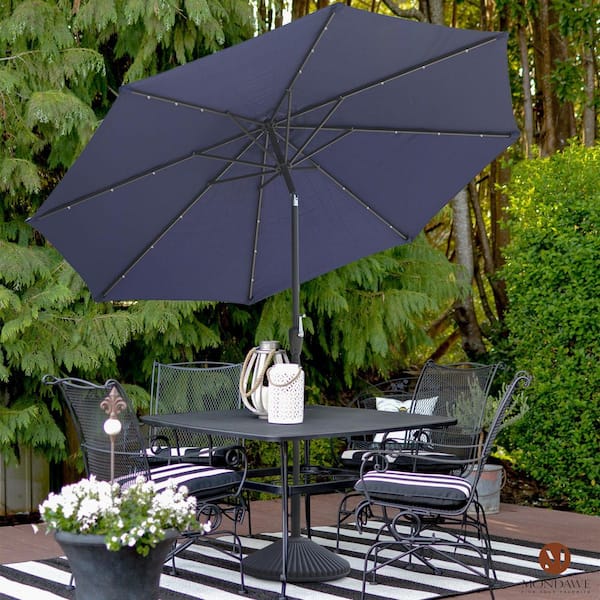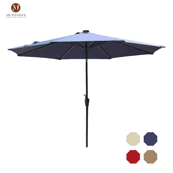 10 ft. Aluminum Patio Umbrella Market Crank and Tilt Patio Umbrella in Blue with LED Lights