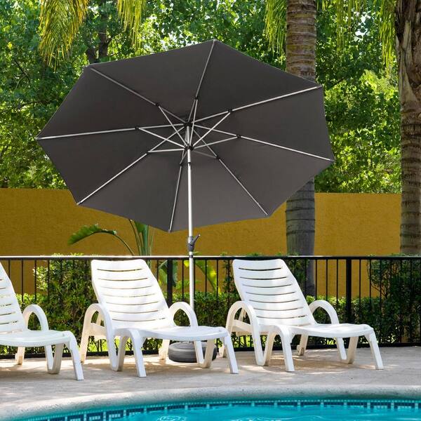 10 ft. Octagon Aluminum Outdoor Market Umbrella in Dark Gray for Garden, Deck, Poolside