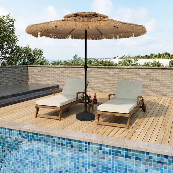 10 ft. Thatched Tiki Beach Umbrella 2-Tier Patio Umbrella with Crank and Umbrella Base in Natural Color