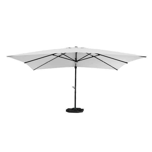 10 ft. x 13 ft. Aluminum Cantilever Outdoor Patio Umbrella Bluetooth Atmosphere Light 360° Rotationin in Gray with Base