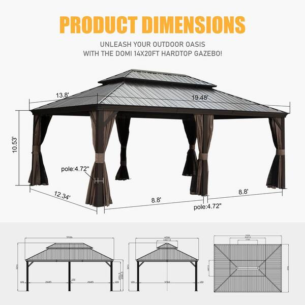 14 ft. x 20 ft. Outdoor Aluminum Frame Patio Gazebo Pavilion Shelter Galvanized Steel Double Hardtop Roof Curtain Net
