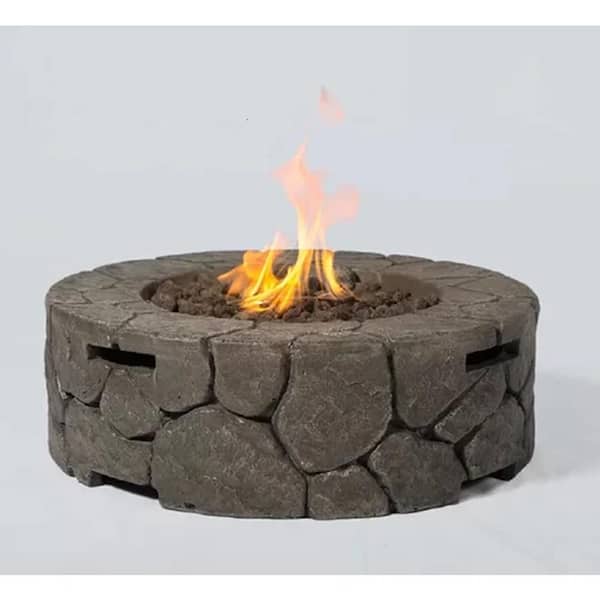 28 in. 40,000 BTU Round Reinforced Concrete Outdoor Propane Gas Fire Pit Table