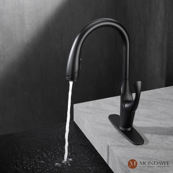 3-Function Tulip High Arc Pull Down Sprayer Kitchen Faucet Single Handle Deck Mount in Matte Black