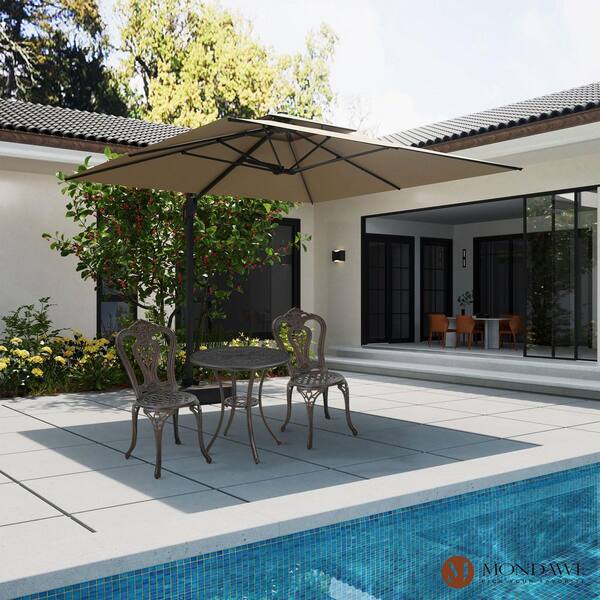 3-Piece Antique Bronze Cast Aluminum Round Standard Height Table Outdoor Patio Bistro Set with 2-Armless Chairs