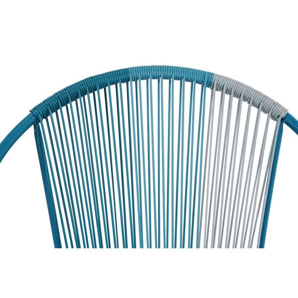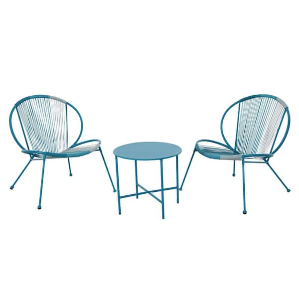 3-Piece Patio Wicker Bistro Table Set Outdoor Shell Chair Side Table Conversation Set with Footrest in Blue