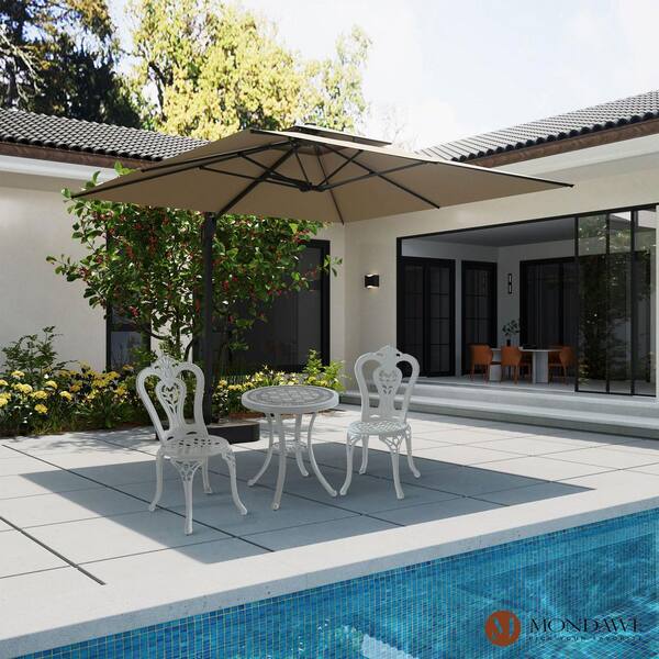 3-Piece White Cast Aluminum Round Ceramic Tiles Tabletop Table Outdoor Patio Bistro Set with 2-Armless Chairs