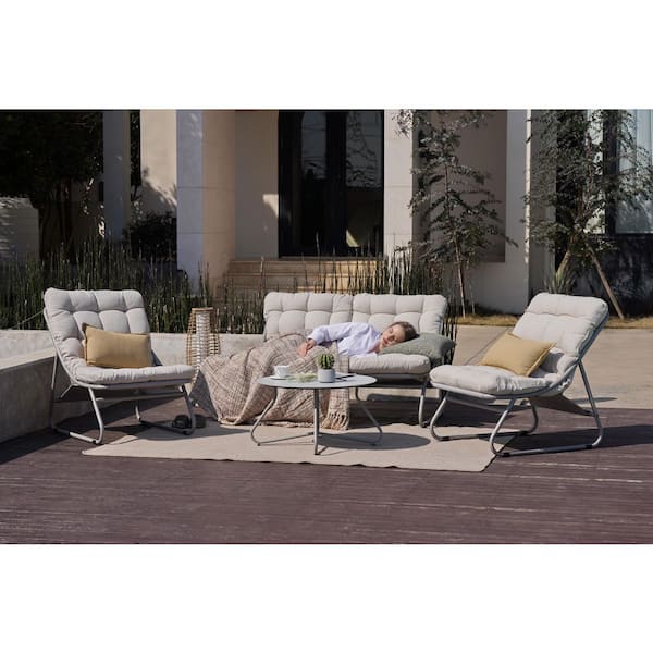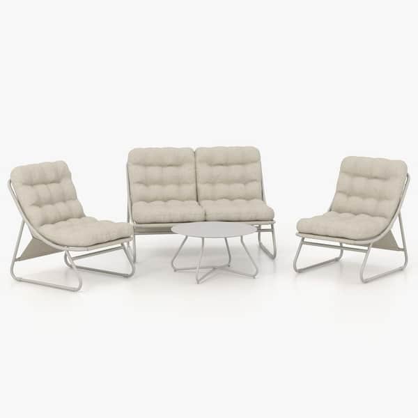 4-Piece Light Gery Metal Patio Conversation Set Sectional Seating Set with Removable Padded Olefin Cushions
