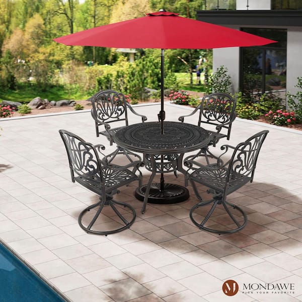 40 in. Round Antique Bronze Cast Aluminum Standard Height Outdoor Dining Table with Umbrella Hole