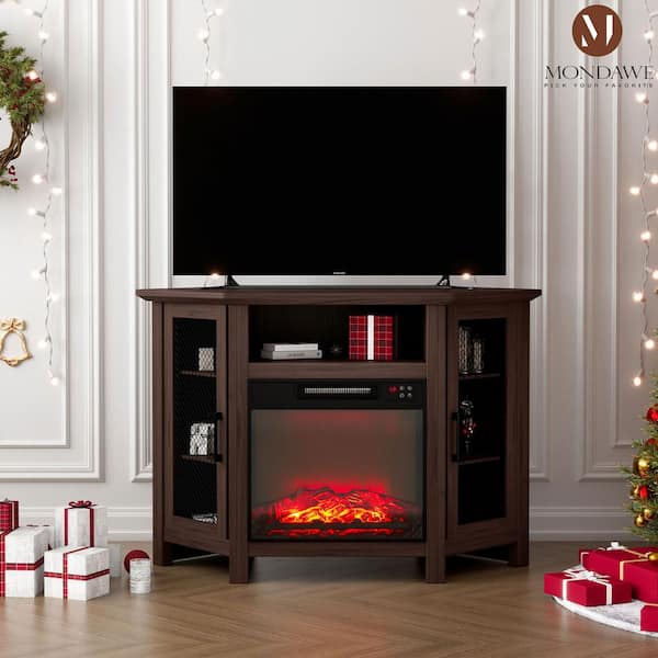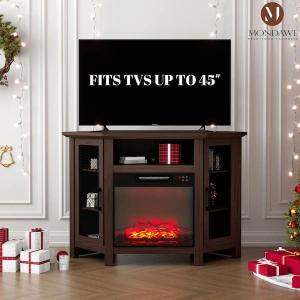 45 in. Freestanding MDF Electric Fireplace TV Stand with Shelves in Brown