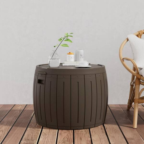 48 Gal. 24 in. L x 24 in. W x 18 in. H Brown Round Outdoor Resin Deck Box