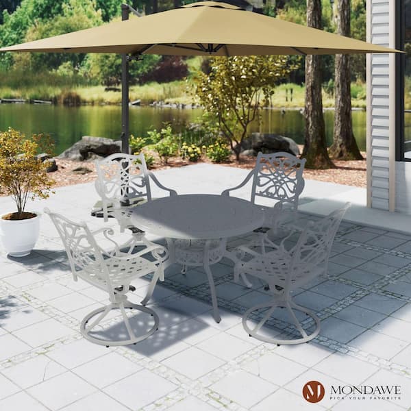 5-Piece White Cast Aluminum Round Outdoor Patio Dining Set