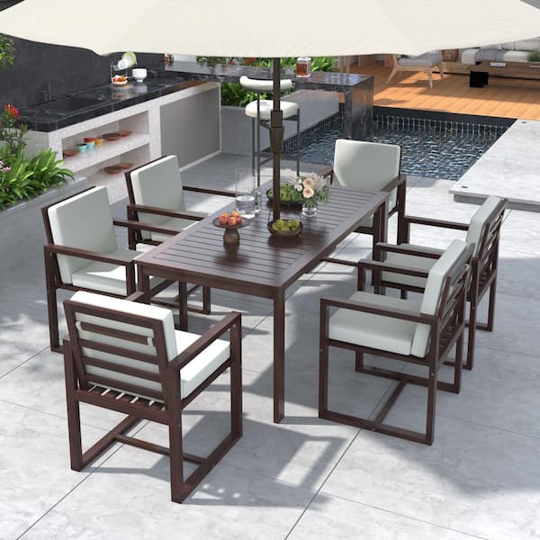 7-Piece Metal Outdoor Dining Set Patio Dining Table and Chair Set with Removable Cushions for Patio, Backyard, Garden
