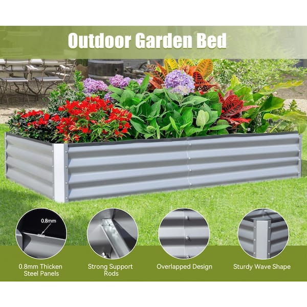 8 ft. x 4 ft. x 1 ft. Sliver Galvanized Steel Rectangular Outdoor Raised Garden Bed