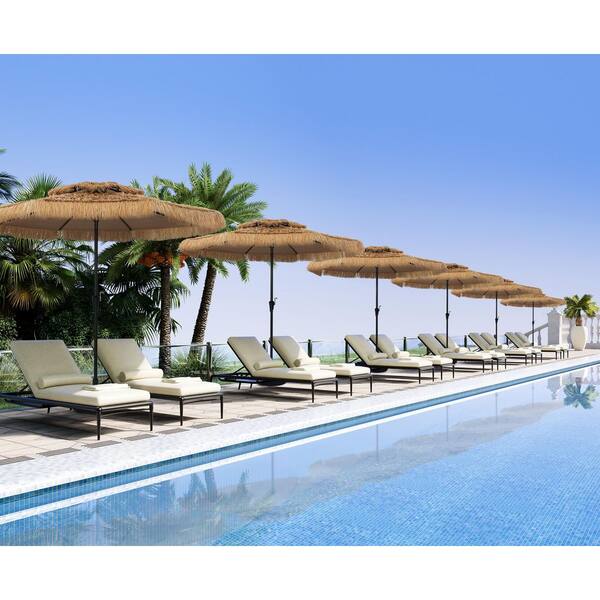 9 ft. Thatched Tiki Beach Umbrella 2-Tier Patio Umbrella with LED Light in Natural Color