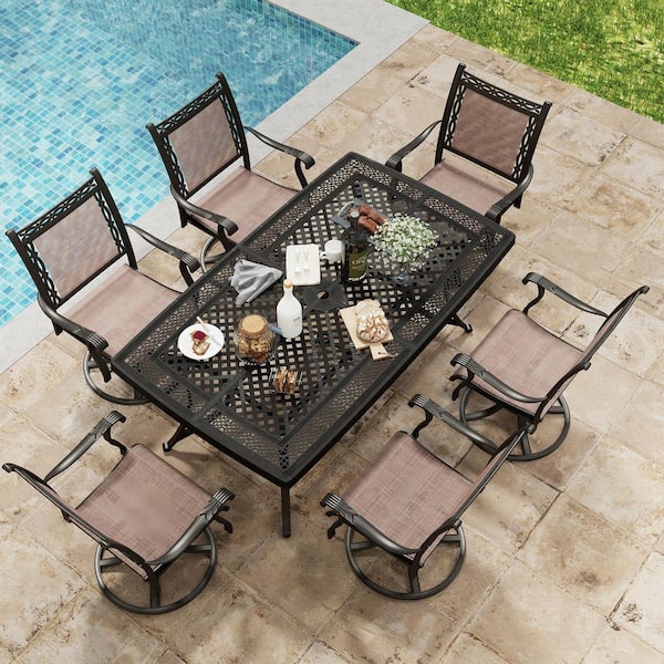 Durable Bronze Metal Swivel Cast Aluminum Outdoor Dining Chair Padded Sling Chairs (6-Pack)