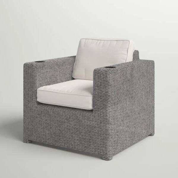 Gray Wicker Outdoor Lounge Chair Patio Dining Chair with Beige Cushions