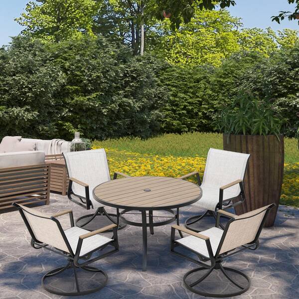 Mongue 5-Piece Outdoor Iron Frame Dining Set with Gray Textilene Swivel Chair and 40 in. W Round Table for Patio
