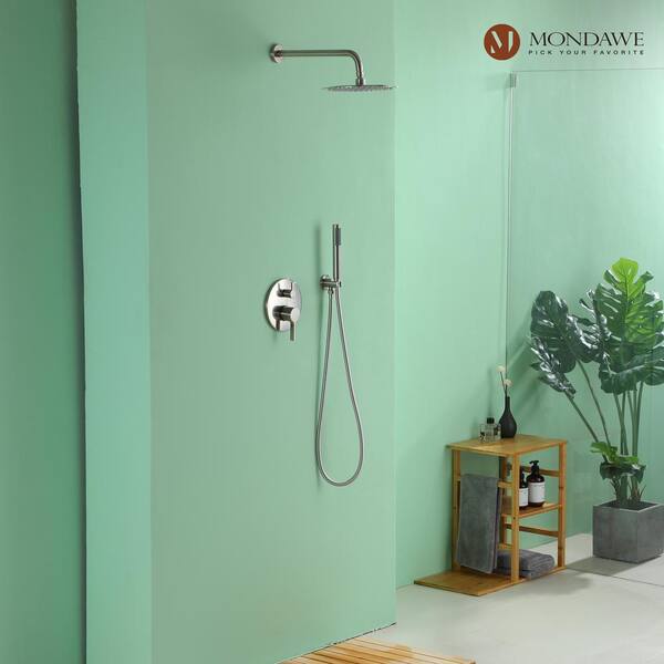 • 10 in. wall mounted round rainfall and 7 in. handheld shower