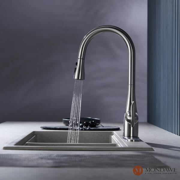 Single-Handle Tulip High Arc Pull Down Sprayer Kitchen Faucet Deck Mount Kitchen Faucet in Brushed Nickel