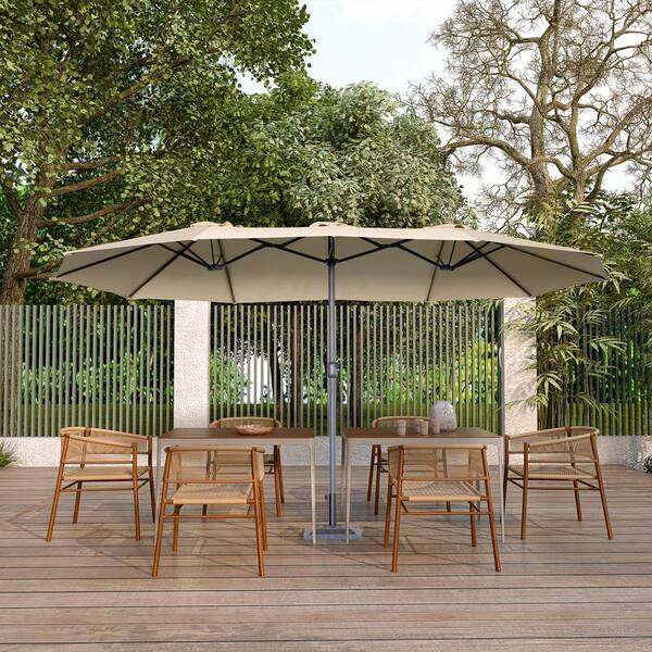 Unthemed 15 ft. Market Steel Double-Sided Rectangular Outdoor Twin Patio Umbrella in Beige