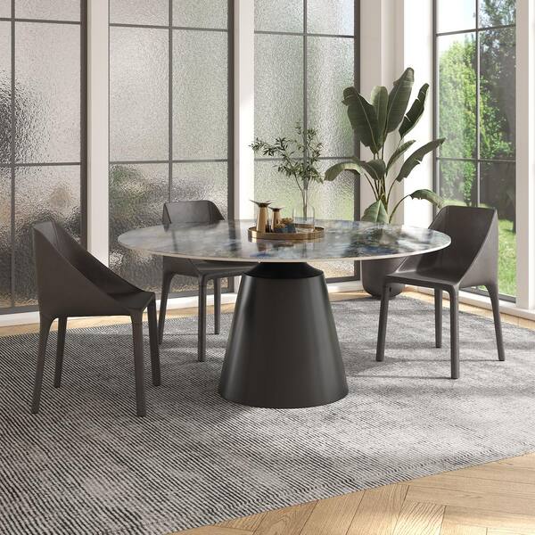 Modern Round White Top Sapphire Stone Tabletop 53.15 in. Black Titanium Stainless Steel Pedestal Dining Table (4 Seats)