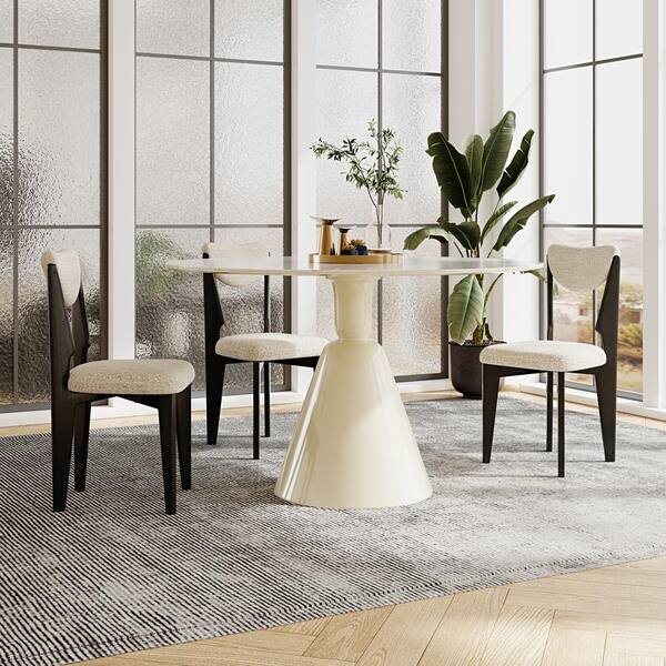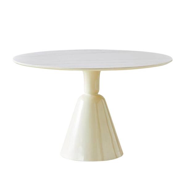 Modern Style Round White Laminate Rock Stone Top 51.18 in. White Glass-Reinforced Plastic Pedestal Dining Table 4 Seats