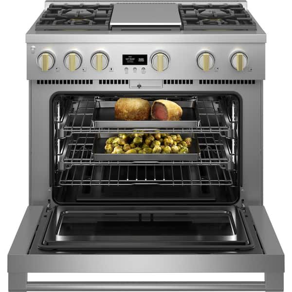 36 in. 6.2 cu. ft. Gas Range with Steam-Cleaning Convection Oven in Stainless Steel