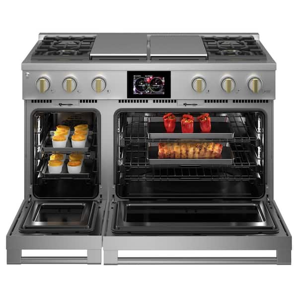 48 in. 8.25 cu. ft. Double Oven Dual Fuel Range with Gas Stove and Electric Oven in Stainless Steel