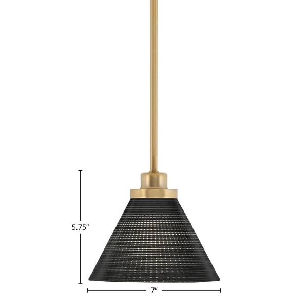 Monroe 100-Watt 1-Light Brass Shaded Pendant Light Mini Pendant with Black Matrix Glass Shade, No bulb included