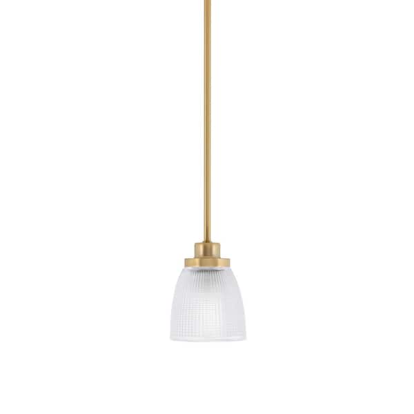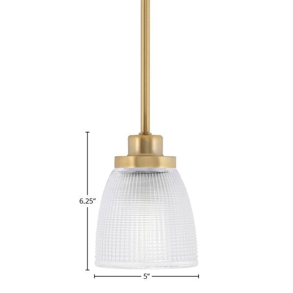 Monroe 100-Watt 1-Light Brass Shaded Pendant Light Mini Pendant with Clear Ribbed Glass Shade, No bulb included