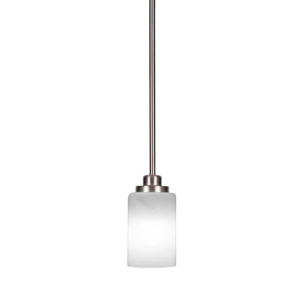 Monroe 100-Watt 1-Light Brushed Nickel Shaded Pendant Light with White Marble Glass Shade, No Bulb Included