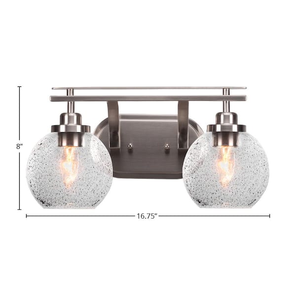 Monroe 16.75 in. 2-Light Brushed Nickel Vanity Light 5.75 in. Smoke Bubble Glass Shade No Bulbs Included