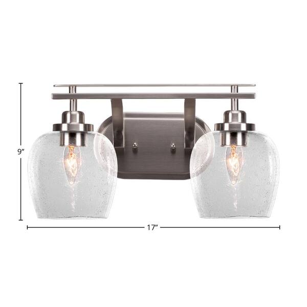 Monroe 17 in. 2-Light Brushed Nickel Vanity Light 6 in. Clear Bubble Glass Shade No Bulbs Included