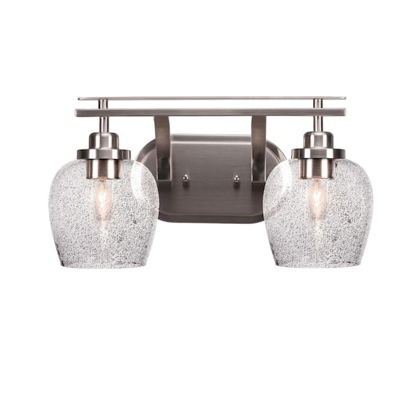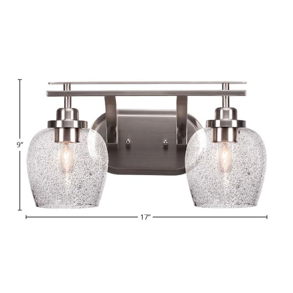 Monroe 17 in. 2-Light Brushed Nickel Vanity Light 6 in. Smoke Bubble Glass Shade No Bulbs Included