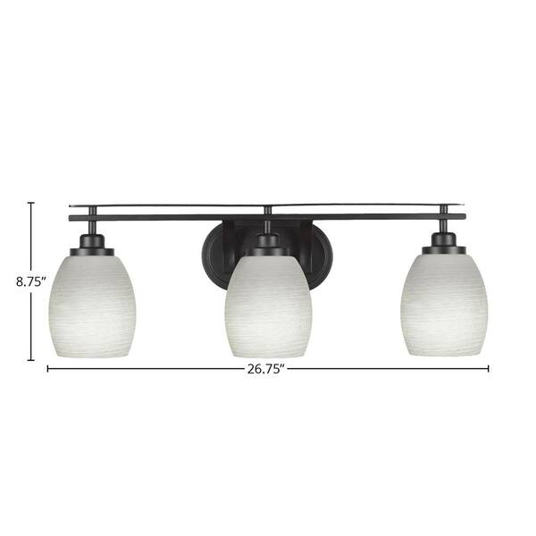 Monroe 26.75 in. 3-Light Matte Black Vanity-Light 5 in. White Linen Glass Shade No Bulbs Included