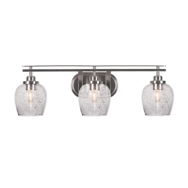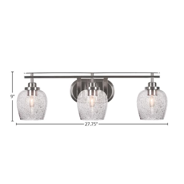 Monroe 27.75 in. 3-Light Brushed Nickel Vanity Light 6 in. Smoke Bubble Glass Shade No Bulbs Included