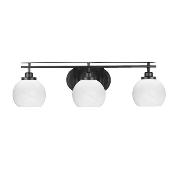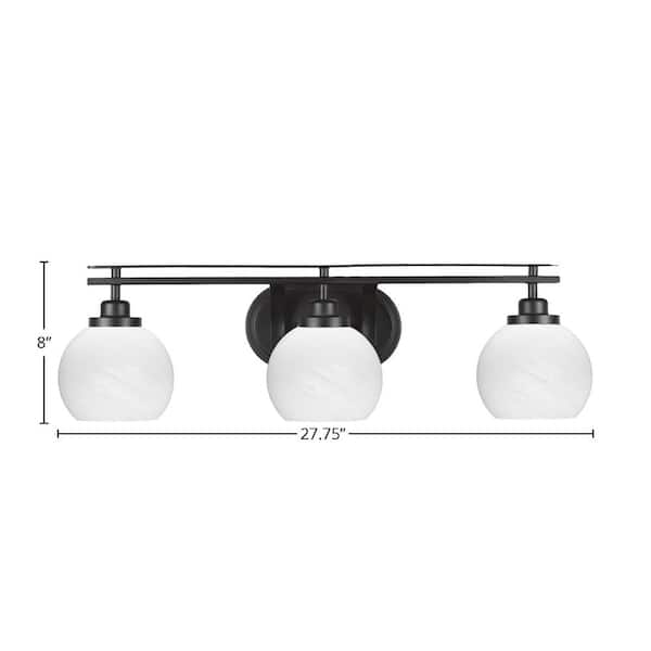 Monroe 27.75 in. 3-Light Matte Black Vanity Light 5.75 in. White Marble Glass Shade No Bulbs Included