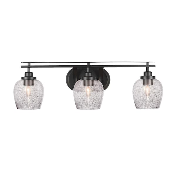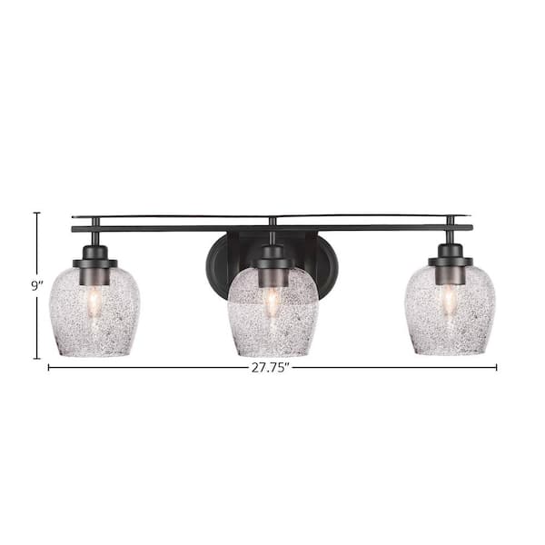 Monroe 27.75 in. 3-Light Matte Black Vanity-Light 6 in. Smoke Bubble Glass Shade No Bulbs Included