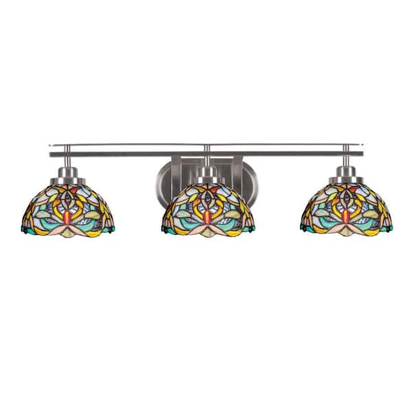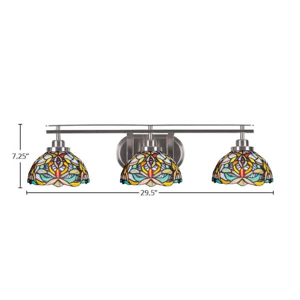 Monroe 29.5 in. 3-Light Brushed Nickel Vanity Light 7 in. Kaleidoscope Art Glass Shade No Bulbs Included