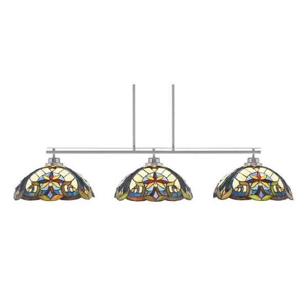 Monroe 3-Light Billiard Light, Round Fitter, Brushed Nickel Finish, 16 in. Earth Star Art Glass