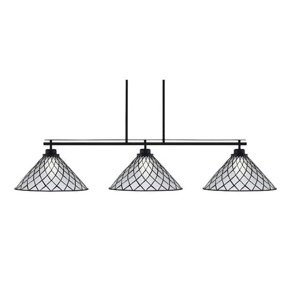 Monroe 3-Light Billiard Light, Round Fitter, Matte Black Finish, 16 in. Diamond Ice Art Glass