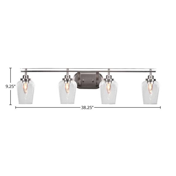 Monroe 37.25 in. 4-Light Brushed Nickel Vanity Light with 5 in. Clear Bubble Glass Shade no Bulbs Included