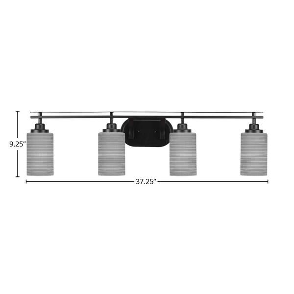 Monroe 37.25 in. 4-Light Matte Black Vanity Light with 4 in. Gray Matrix Glass Shade No Bulbs Included