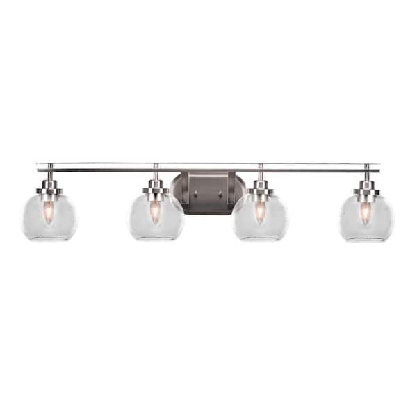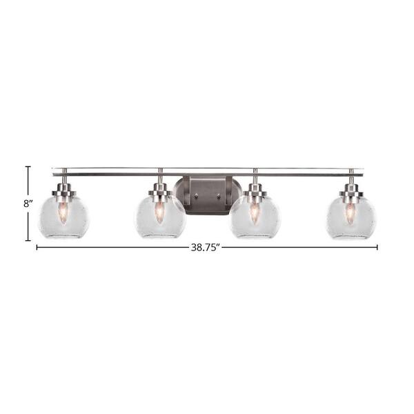 Monroe 38.75 in. 4-Light Brushed Nickel Vanity Light with 5.75 in. Clear Bubble Glass Shade no Bulbs Included